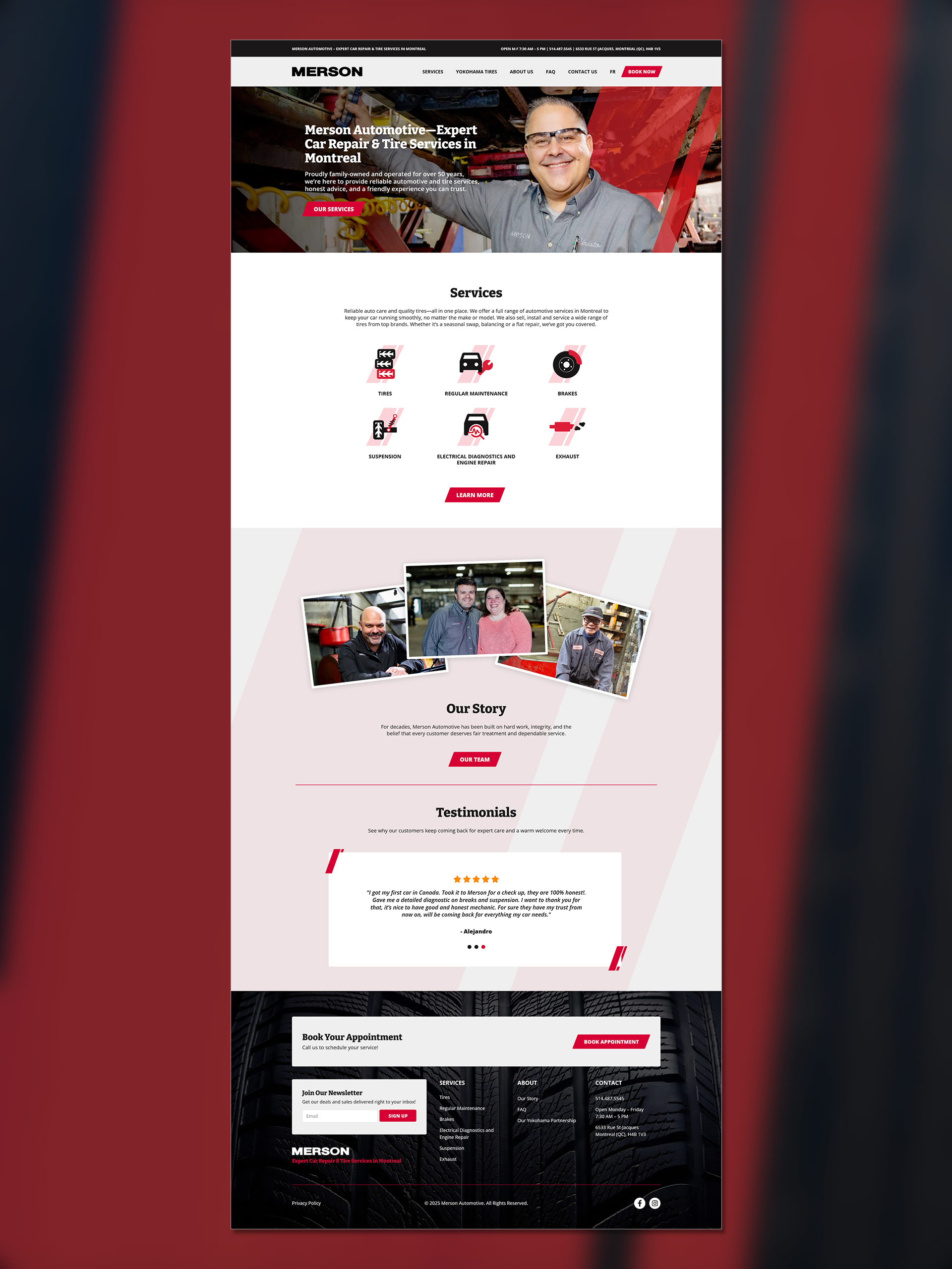 Red Dream Studios a été ravi de collaborer avec l’équipe formidable de Rubix Marketing pour la création du tout nouveau site web de Merson Automotive, un centre de réparation automobile et de service de pneus de confiance à Montréal depuis plus de 50 ans.