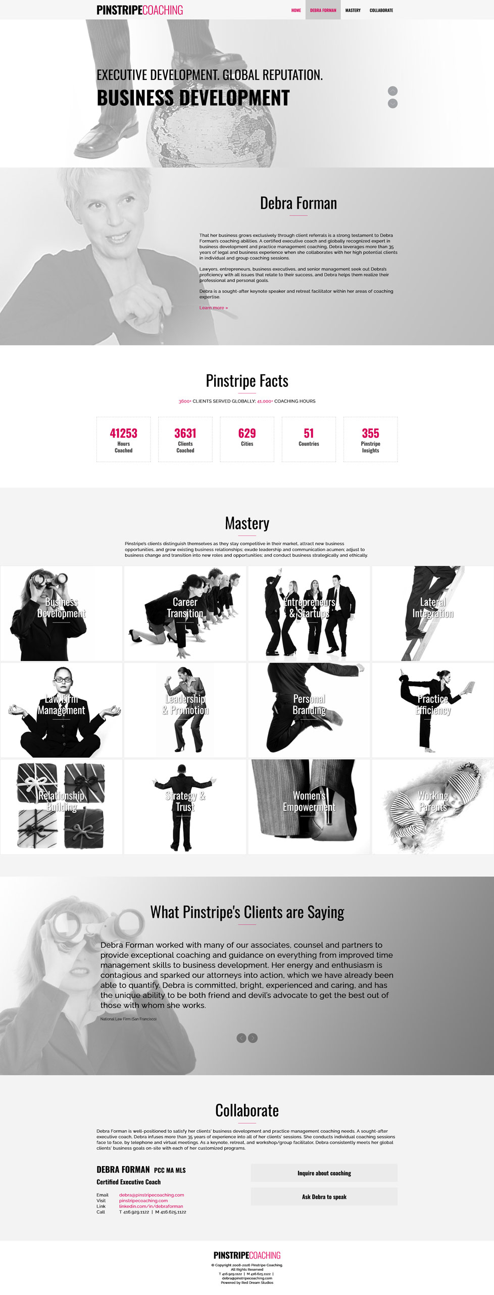 Cliente depuis 2008, Debra Forman de Pinstripe Coaching a fait appel à Red Dream Studios à plusieurs reprises pour la création de son site web, la conception graphique et ses services multimédias.