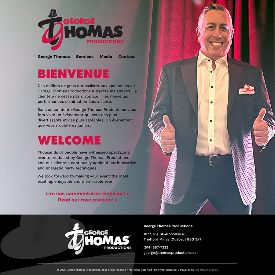 Après avoir rencontré cet artiste exubérant en 2002, George Thomas a fait appel à Red Dream Studios pour créer un site web reflétant son style, son charisme et l’énergie communicative qu’il déploie lors de ses soirées et événements. Le site a ensuite été refondu en 2025.