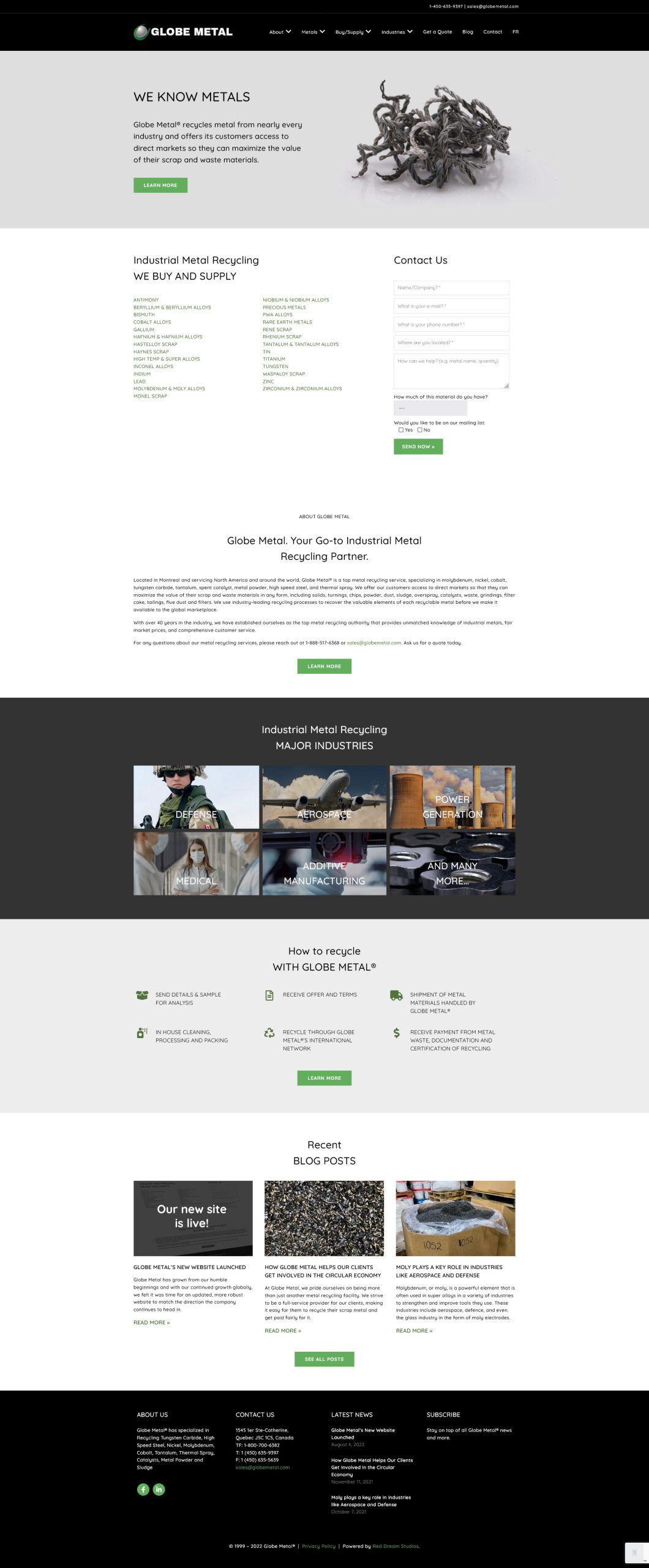 Après plus de 40 ans d’activité, la création d’un nouveau site web pour Globe Metal représentait un défi de taille. Avec la participation de nombreux acteurs, Red Dream Studios a collaboré avec des photographes, des vidéastes, des spécialistes marketing et SEO, et bien sûr, Globe elle-même, afin de concevoir un site web moderne, responsive et basé sur WordPress.