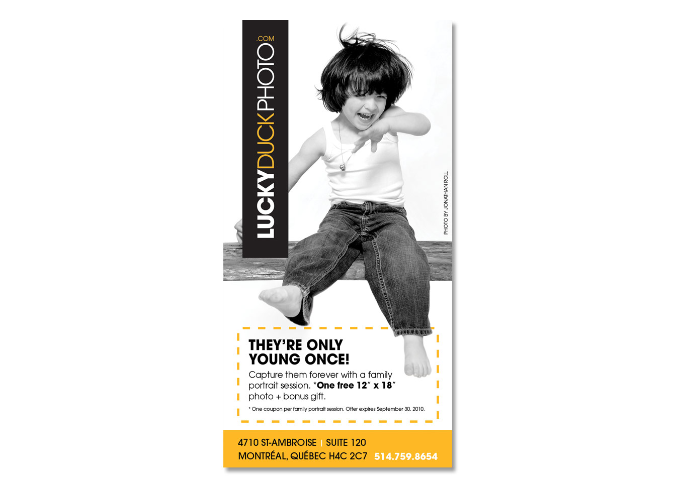 Red Dream Studios a créé ce dépliant promotionnel et ce coupon pour Lucky Duck Photo.