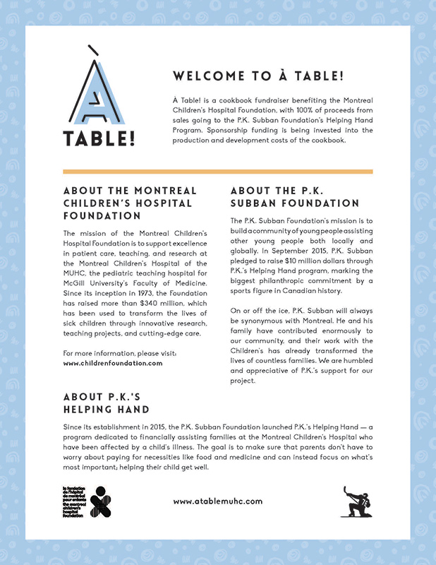The À La Carte cookbook-storybook features simple family recipes and heartwarming stories from the Montreal Children’s Hospital. And À La Carte is a fundraiser, with every dollar of proceeds from book sales benefitting the Montreal Children’s Healthy Kids Fund.