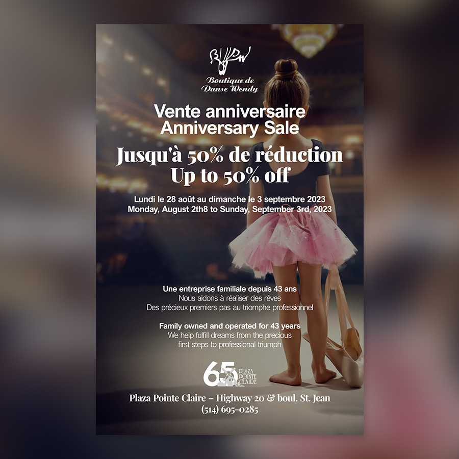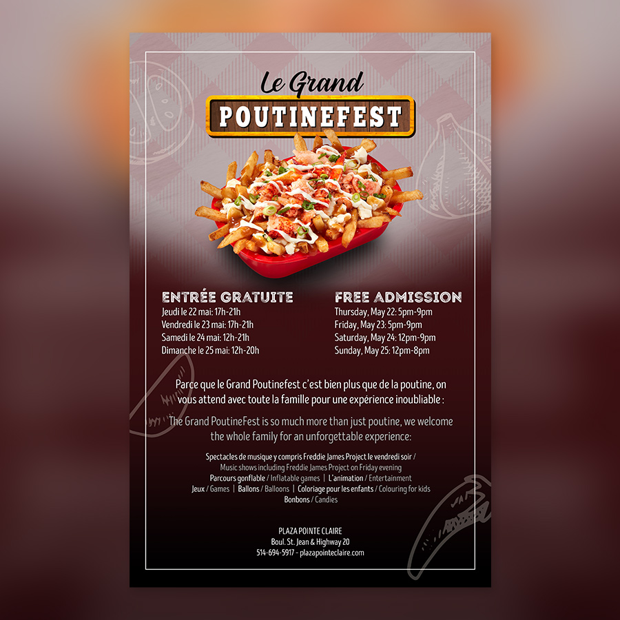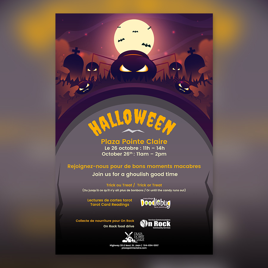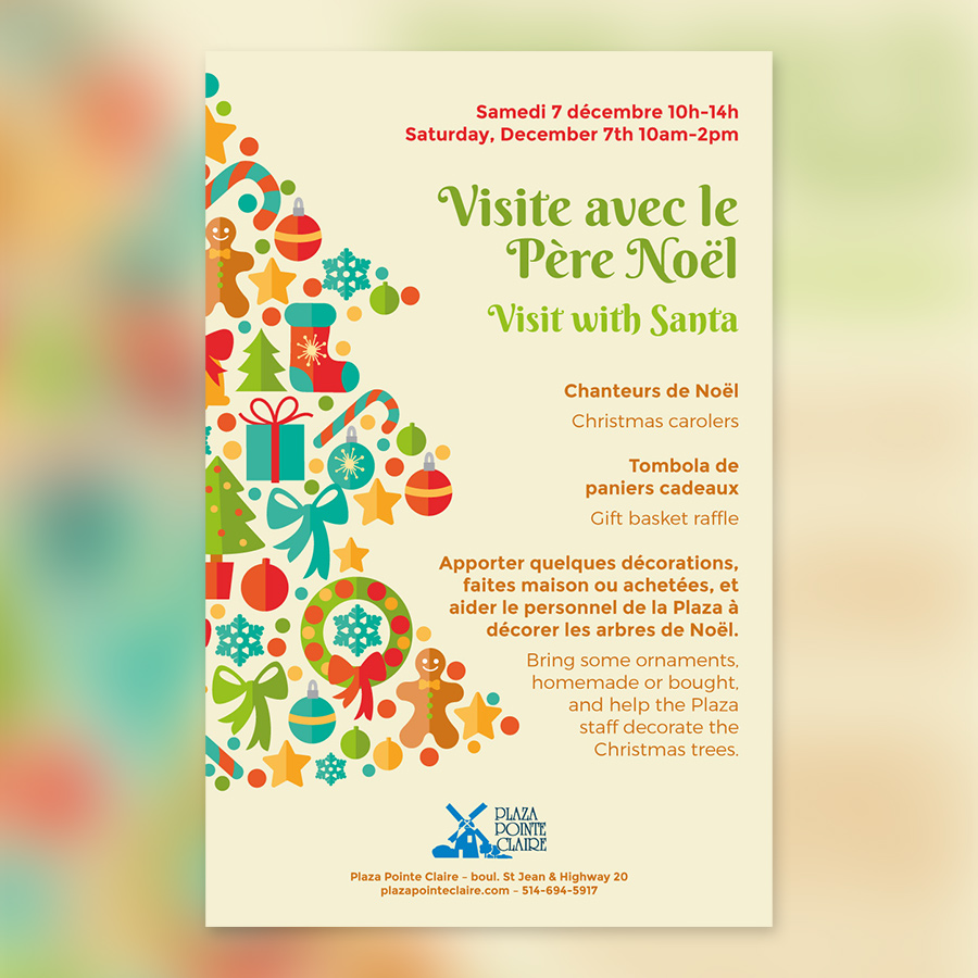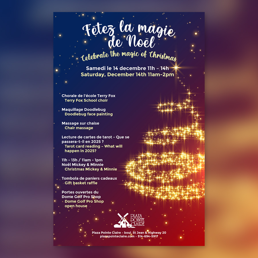 Plaza Pointe Claire, located in the West Island of Montreal, offers a range of goods & services, from medical care to groceries to clothing, at a large shopping center. In 2017, Red Dream Studios was contracted to become a regular service provider of graphic design and marketing to the mall’s merchants, as well as to promote events happening at the mall itself.
